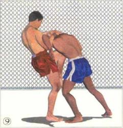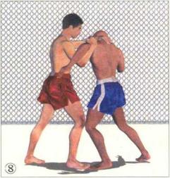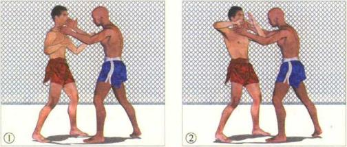双方交手对手突然向前伸出双臂意欲用双手缠抱我的头颈。