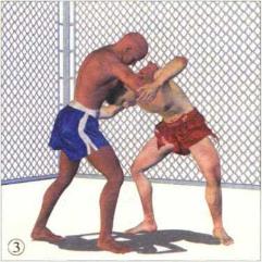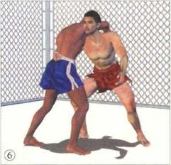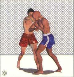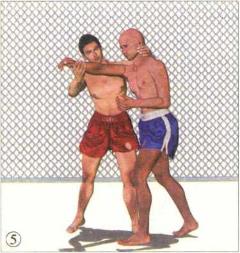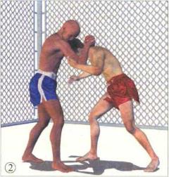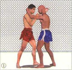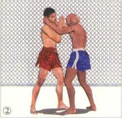 格斗双方正面交锋对手率先用泰式缠抱控制住我的头颈局面对我不利。