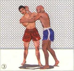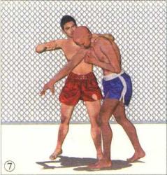 0当我的头颈由对手右臂下方绕过、成功逃脱控制后迅速挺胸抬头以右侧肩头向上挤顶对手右侧腋窝实施反制。