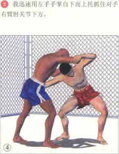 进一步可以再用右肘横击对手的头部右侧。