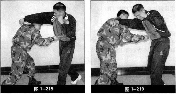 3 而后迅速收警棍以警棍末端戳击敌右肋(图1-219)。