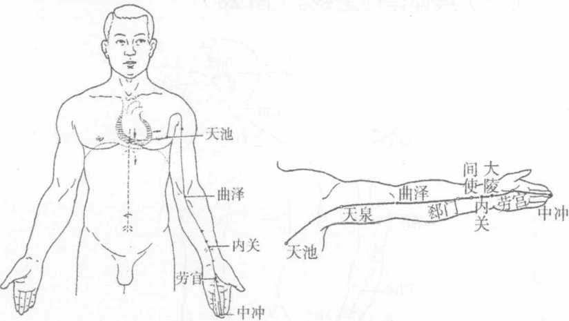 穴名天池此经启始上肢全面孤行天泉曲泽郑门间使内关大陵劳宫指尖中冲。