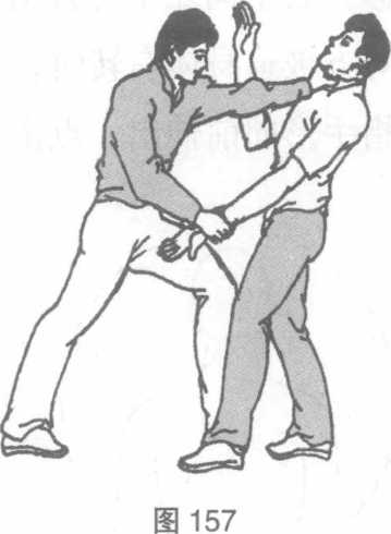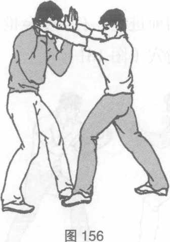 穴歌点到落颈定伤命。所属奇穴。位置在颈上侧下颌骨后大筋中扁桃穴正后方处。(图155)穴数左右共2穴。神经分布有颈神经和枕小神经。图155图155血管有颈升动脉、颈内静脉。图155图155第五章徒手点拿36第五章徒手点拿36点击对方从我身前两手从左右两侧以双风贯耳的招法向我进攻时我两肘关节弯曲两手向上、向外挂防(图156)随即我右手向右缠绕抓按对方左臂同时左手变钳指手形向前伸出抓掐对方落颈穴(图157)。第五章徒手点拿36第五章徒手点拿36要点挂防时两前臂肌肉要紧张掐穴时力达拇、食指尖端。