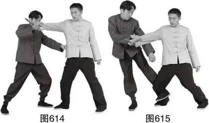 图612 图613图612 图613用于夺取反握匕首下竖扎腹或胸部。
