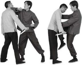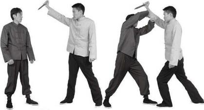 顶颈顶裆顶颈顶裆用于夺取正握匕首刺头或胸部。