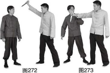 (图273),乙欲动甲紧跟向乙右腿前上步左