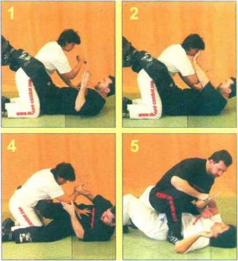 1攻击者跪于自卫者两腿之间(防守姿势)选用角度4进行攻击(向内攻击