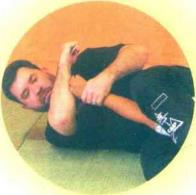 3 自卫者上抬上体,使用右臂缠绕攻击者的右臂并抓住自己的左腕。