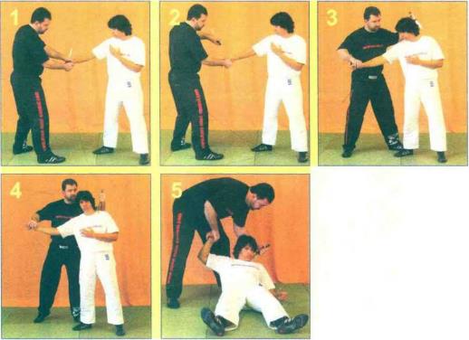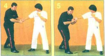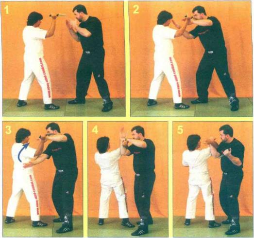 5 自卫者将左手置于刀背上夺走攻击者手中的武器进一步转动攻击者的身体并对攻击者的肾脏部位实施刺击技巧或是用刀实施控制技巧。