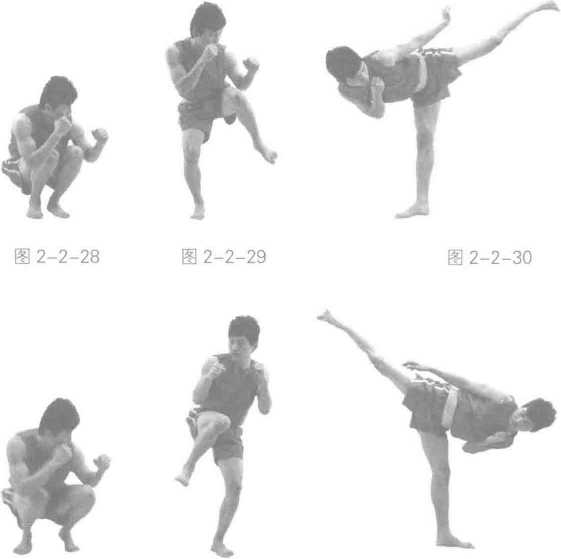 2 空击双手握拳成格斗势以最快的速度进行拳法、肘法、腿法的空击练习动作速度越快越好。