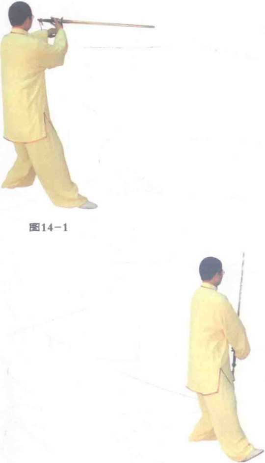 1. 转体举剑 zhuan ti Ju jian (图 14-1 )