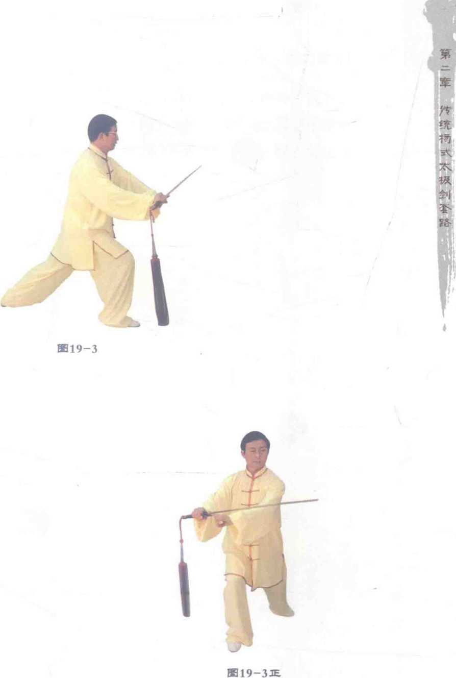 3.弓步引剑 gong bu yin jian (图 19-3x 图 19-3正)