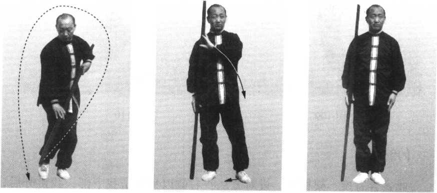 动作一同五十三式动作一(图112)。赵 堡 太 极 拳 诠 真赵 堡 太 极 拳 诠 真动作二赵 堡 太 极 拳 诠 真赵 堡 太 极 拳 诠 真同五十三式动作二(图113)。动作三左手松把,向左划弧收回左胯旁,手指自然下垂;左脚收至右脚旁, 成立正姿势(图H4)o