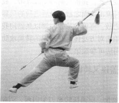 此式与第三式“白云盖顶 逞英豪”动作相同,方向相 反。要点参看第三式。