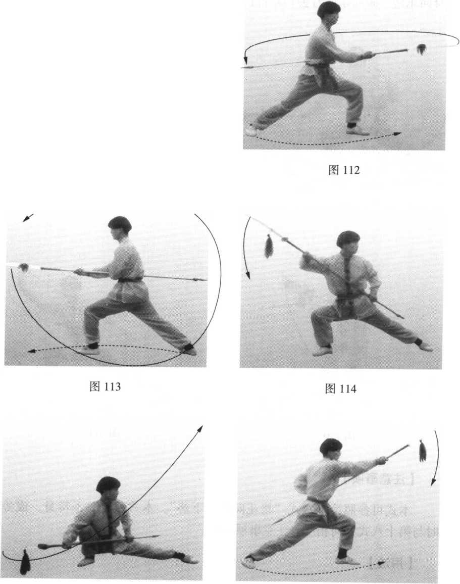 白云盖顶又转回白云盖顶又转回动作一同第三式动作一(图112)。动作二同第三式动作二(图113)。动作三同第三式动作三(图114 )。动作四同第三式动作四(图115)。动作五同第三式动作五(图116)。【注意事项和用法】同第三式“白云盖顶逞英豪”。