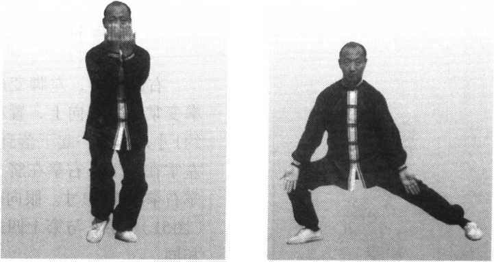 图48图48图49、图50与第十四式图39、图 40基本相同,惟图50与图40的差别是 图40是合双掌,图50是收右脚、合双 拳,拳心向里,面向南。