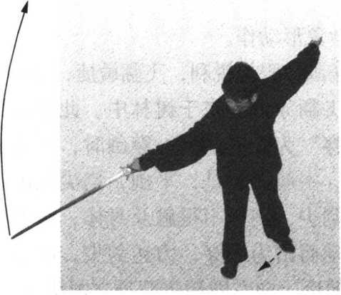2 图 5-278图 5-278.燕翅撩腕(两臂后背,右剑斜撩)