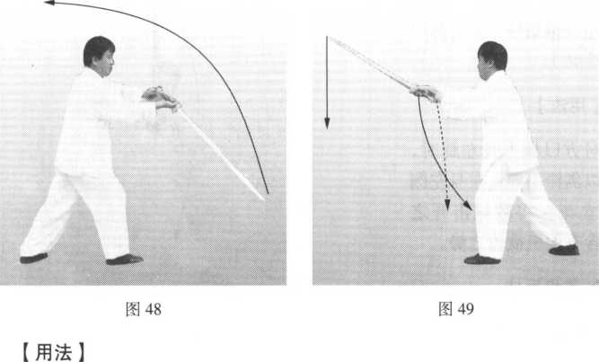 方注视西北)所朝的方向直臂劈出,剑高与头相平(图48、图49)。