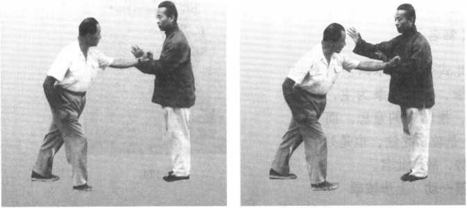 住左腕,同时上体略微前倾;左右两掌刁捋其左臂朝身之左侧沉采,使对方 向前扑跌(图127、图128、图129 )□