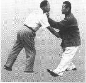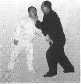 如对方以左掌向我胸前打来,我则以右掌捋住对方左臂肘部并以左掌刁