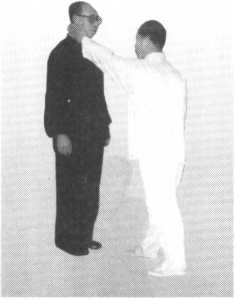 转,以掌拍其右肩。对方则应手而倒在地或跌出(图388)。