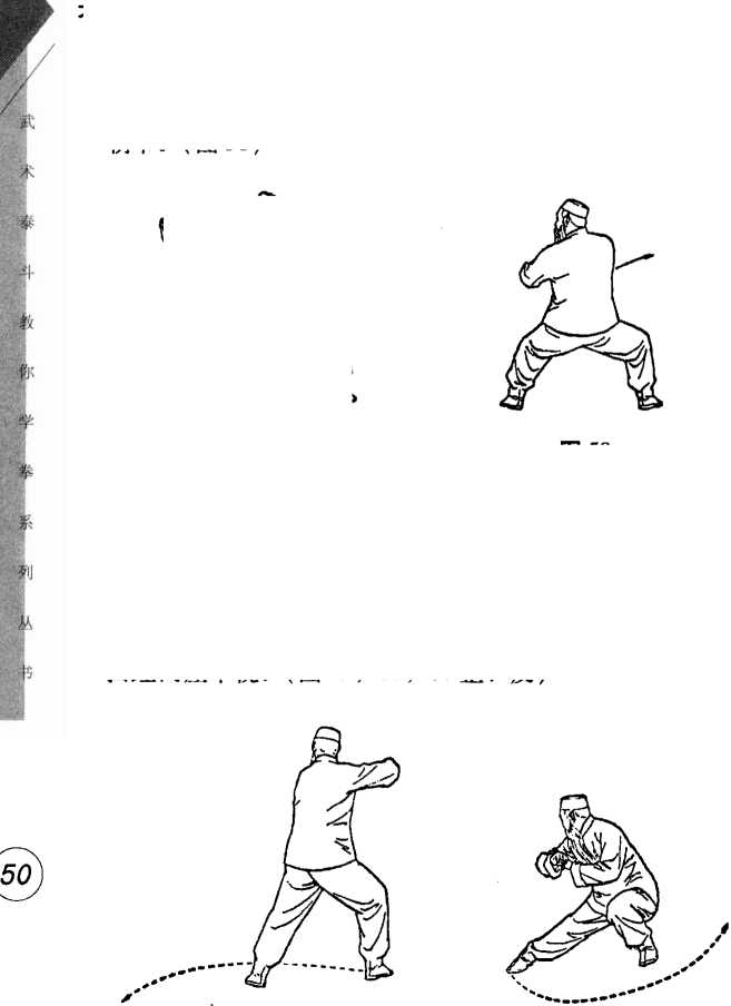 五路查拳五路查拳换,扫踵要低要快,贯拳与扫腿同时进行完成。