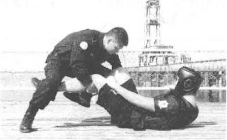 易犯错误:下潜时,抱不住双腿,或者是将对方摔不倒。