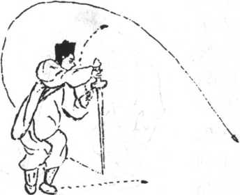 家古老传统技击剑术。不论是陆地的、水中的、天上的、 地下的一些妖魔鬼怪皆要除掉。在演练此式中,意想个 人被恶虎、凶蛟、妖魔鬼怪困扰,处于危险的境地之中, 只有除掉这些恶魔才能保全自己,所以出剑要快、有力。 此式属防中寓攻剑法。