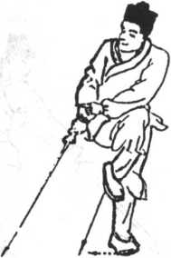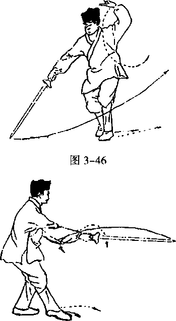 附在右手腕上,手心向内,上身随提剑微向左 倾提腰,眼视剑尖(图3-41) o