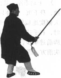 “拂手拈香” 一式,取其道观中道士上香 时,用两三个手指轻轻地夹捏敬香之式。是一 种攻防兼备的剑法。转身侧崩必须要做到抖崩 腕力之劲, 其意是破解 敌侧方之进攻。演练时要有把敌方之剑崩得脱 ,