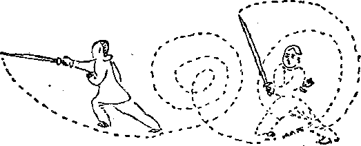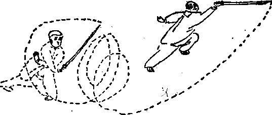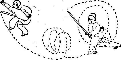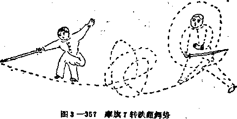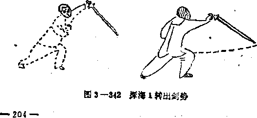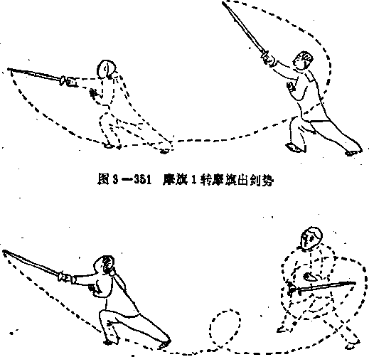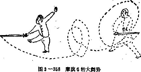 6转翻舞由摩旗势作交步开步翻剑,翻身舞之。以4步为1场此是九转之