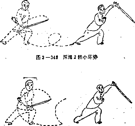 6转翻舞由探海势作交步开步翻剑翻身舞之。以4步为1场此是九转之6』