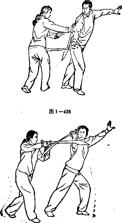 继续向乙腰拦斩提闪图1-435、1-438)。