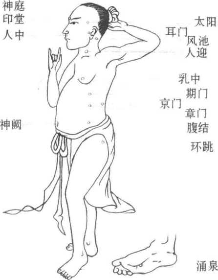 要达此境除了知道绝穴精确位置之后还要寻根究底即深切地了解与熟识人身气血流行的途径搞清楚何时辰气血头当达何穴何时辰气血头过某处然后再依时辰之变化点击应点之穴则气血之头被阻滞前行不得,退又壅塞而致敌气血紊乱。