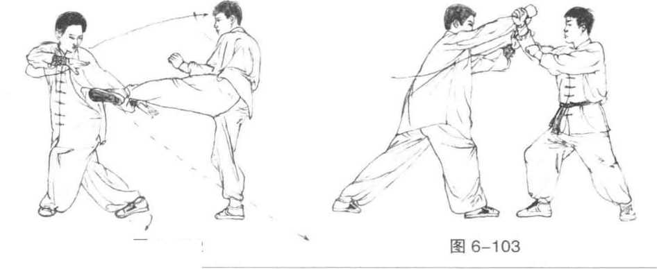 右拳翻打其面部。(图6-102、图603)右拳翻打其面部。(图6-102、图603)