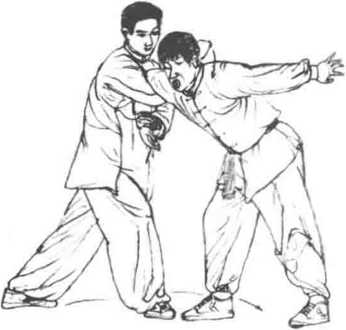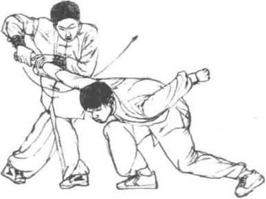 2如果对方退落左步上抬右臂拦格我双拳,我即用右手翻指扣握其腕,向右下拉左臂肘压其大臂使其前仆。紧随着右手松握前穿过腋将其右臂缠住右臂向右下翻压将其擒拿。(图6-104?图6-106)2如果对方退落左步上抬右臂拦格我双拳,我即用右手翻指扣握其腕,向右下拉左臂肘压其大臂使其前仆。紧随着右手松握前穿过腋将其右臂缠住右臂向右下翻压将其擒拿。(图6-104?图6-106)图6-104图6-104图6-105图6-105图6-106图6-106