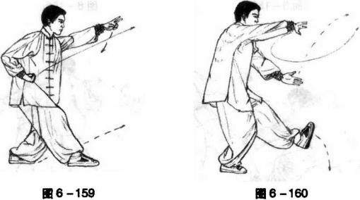 指相对左掌做于肩右掌略高于肩目视(图6-160)