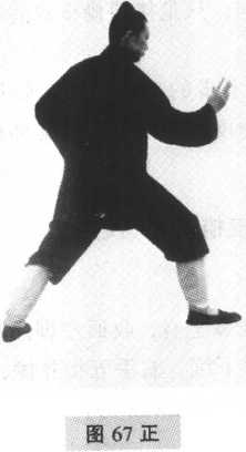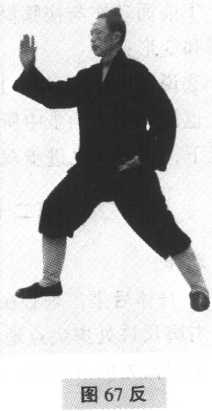 ①前面动作与搂膝拗步基本相同,只是搂膝拗步式的继续 推掌和变形;