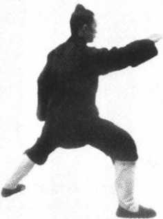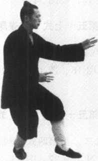 ④后腿的提起和迈步,全凭前腿胯根处微外旋内收,下沉 坐实,做到身正、肩平、肘不夹肋和气落腰围,小腹与后腿自 觉松净,起步自如,迈步轻灵。