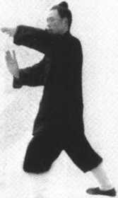 ④推按之手直中有曲,弓步方向,回脚内扣,虚实变换都 要标准到位。