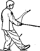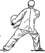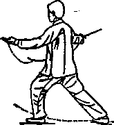 (1)弓步分手身怵左转,左脚尖外撇重心前移成左弓步(面向西北)同时两手向后弧形分开停于身钵两侧剑尖向右手心均向上眼向前看(图43)