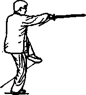 (3)提膝上剌重心前移右腿独立左腿提朦同时右手剑向前上剌高与眼平左剑指附于右手腕眼看剑处(图39)