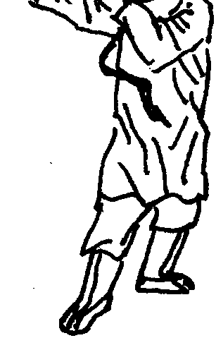 注:两手向左划双圆,双尸烟套要连环。左手带脚,右手勾,双臂平伸劲相 连“