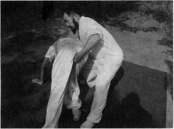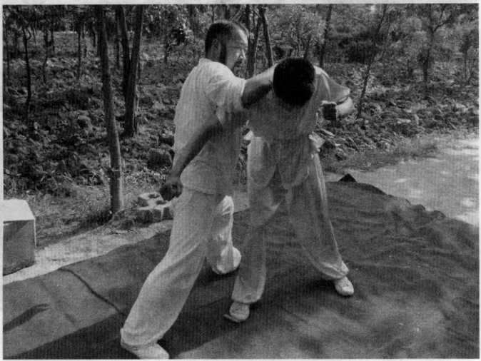 动作1敌我反自由步站立。(图8-1)2敌方右拳攻击我面部,我侧步闪开对方同时右手将对方颈部扣住。(图8)(图8-2)3左手从敌身后探进掏抓敌下阴并向上提拉致敌前仆。(图8-3)- (图8-3)要领掏不是主攻手扣劲手在控敌后要配合助攻南衣十八跌南衣十八跌南衣十八跌南衣十八跌拉拽,迫使其倾身弯腰,方易得手。