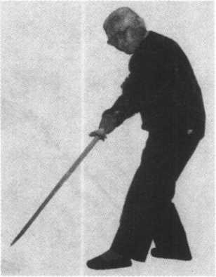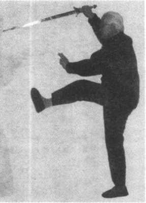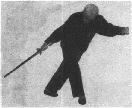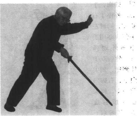 ?剑用弧形削向西北上 方,剑尖略高于头,剑 就指向南方,停于腹 剧蓊*廉着剑诀(图