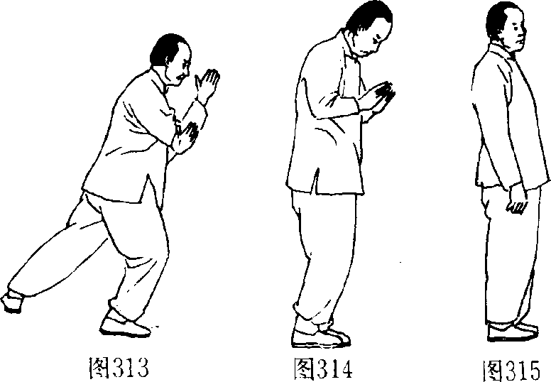 4. 上体向右转,重心向前移。(图313)