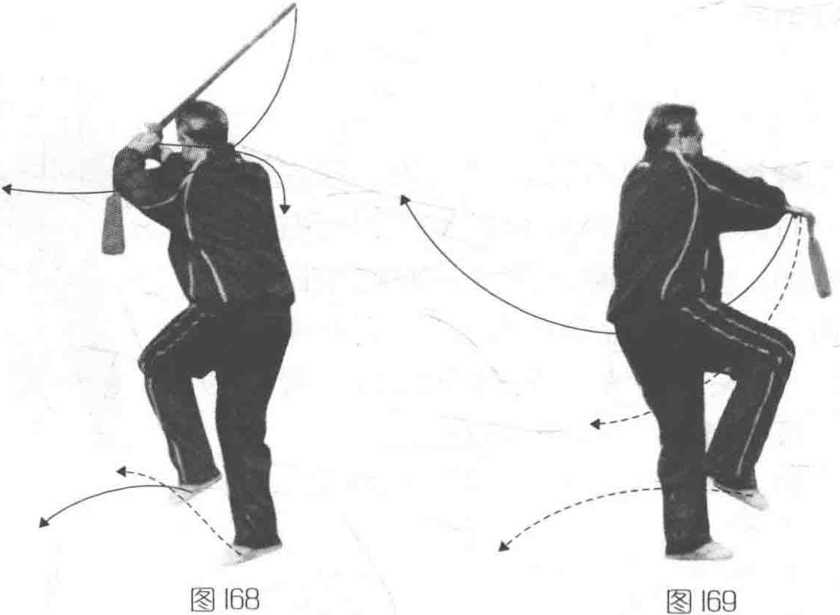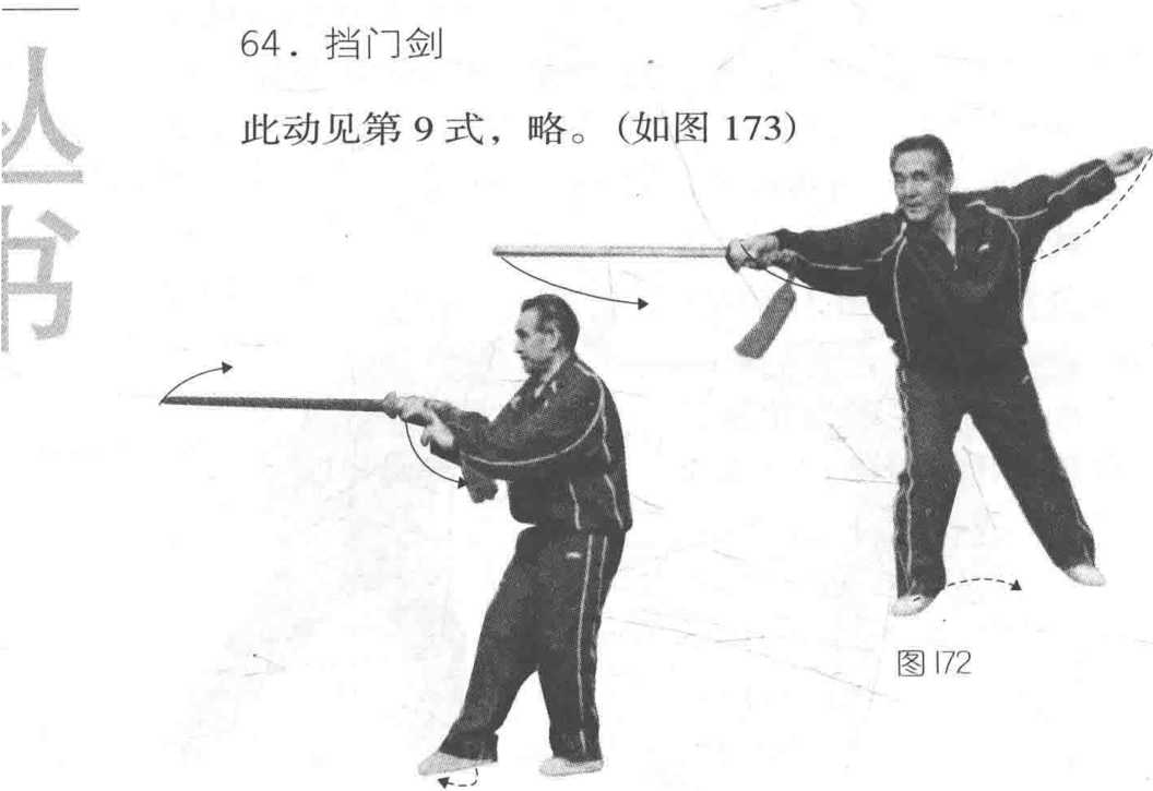 前),刃左右,左手剑指至剑柄。身前),刃左右,左手剑指至剑柄。身正,正,目视剑尖。(如图171)