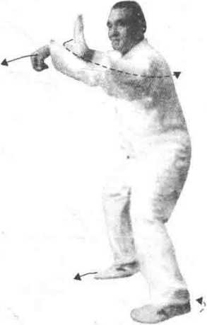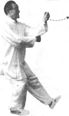 技击含义:①敌用右手进击我胸,我左手拿捋之, 并向左转体引拉。同时右脚速向右前移动以拌其脚而摔 之。右手握拳,侧击其胸肋。②敌用左手击我胸,我