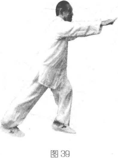目视左拳前方。(如图38、