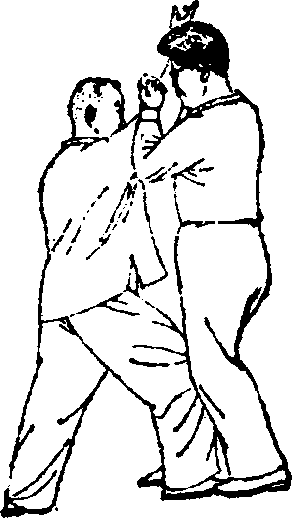 “八字歌”对于搠、搬、挤、按、采、捌、肘、靠给 予了高度的评价,而太极推手更以这八种手法作为基本 训练的内容,要求反复熟练,灵活自如,一动无有不动。 进一步分析这八种手法可以看出,前四种基本上是直来 横去和横来直去,制搠用城,克搬用挤,破挤用按,化 按用搠,而破挤也可以用搬;后四种基本上是斜角动作, 是在步法变换中,用肘克靠,用采制肘,用捌化采,用 靠破捌,步随身换,腕随掌转,步法手法与身法变化协 调一致,全身一动无有不动。